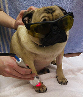 Laser therapy is the use of laser light to stimulate biological processes that lead to faster healing and pain relief. Any condition that causes swelling and pain can be treated with laser. Most treatments take from 3-8 minutes. What applications are treated with laser you ask? Any number of conditions ranging from post-surgical pain management, muscle tears, Intervertebral Disc Disease, arthritis, lick granulomas, tendon and ligament tears, otitis plus many others.
